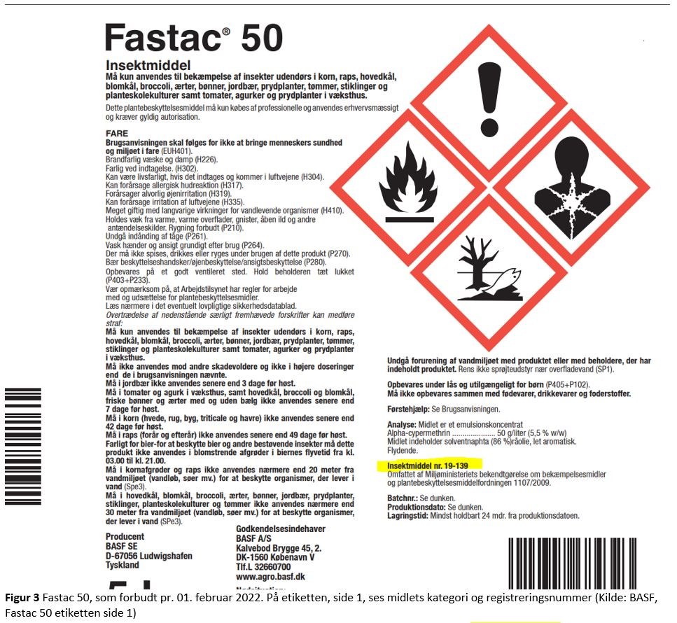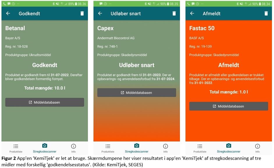 For at tjekke om det pågældende middel og etikette er lovlig anvendes enten appen KemiTjek eller ved opslag af registreringsnummeret i databasen (https://middeldatabasen.dk/positiveList.asp ). Adgang til KemiTjek kan oprettes her (https://onlinebestilling.dlbr.dk/Order/Shop/kemitjek?_ga=2.3689264.1847055485.1632117588-1706797317.1603275698). Abonnementet koster 299 kr./år. Ellers kontakt din planterådgiver for gennemgang af kemirum.