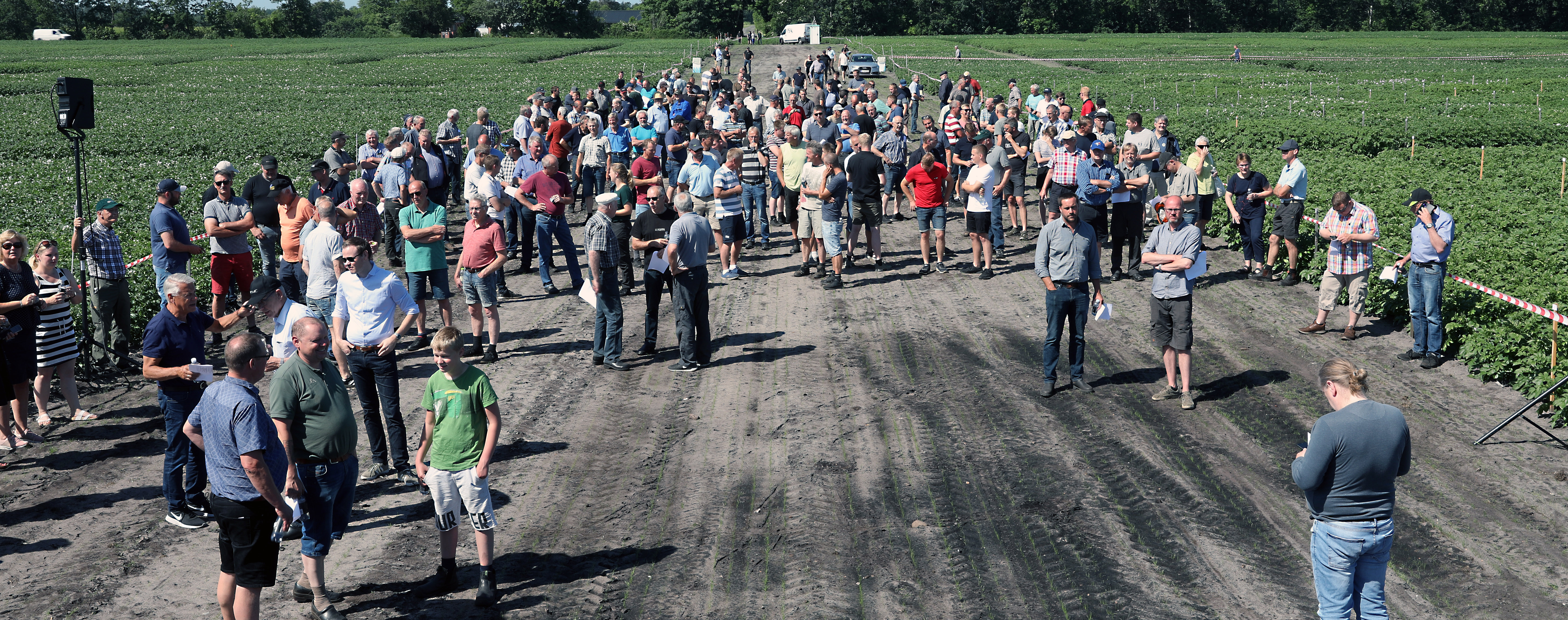 På SAGROs forsøgsarealer ved Arnborg var de mange landmænd troppet op i lyset af den alvorlige situation, de står overfor. Formand for L&F Martin Merrild og formand Carl Heiselberg, Danske Kartofler kridtede banen op omkring den frustrerende proces, det har været for landbruget, der først alt for sent har fået en afklaring, og som stiller kartoffelavlerne i en kaotisk situation.