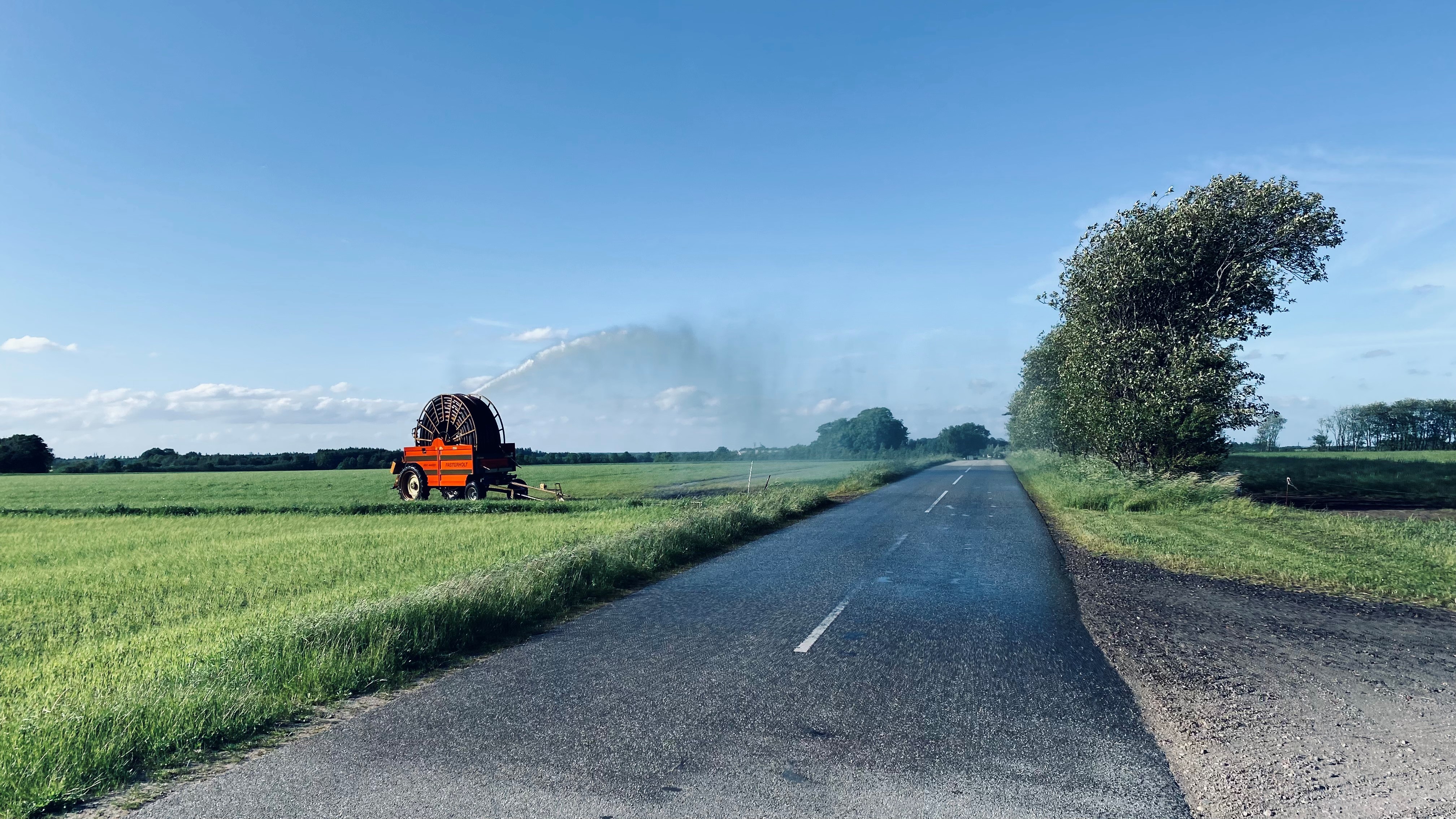 Skulle man som trafikant komme forbi en vandingsmaskine, der rammer en offentlig vej, opfordrer Jørgen Christensen til gensidig forståelse fra både landmænd og bilister.