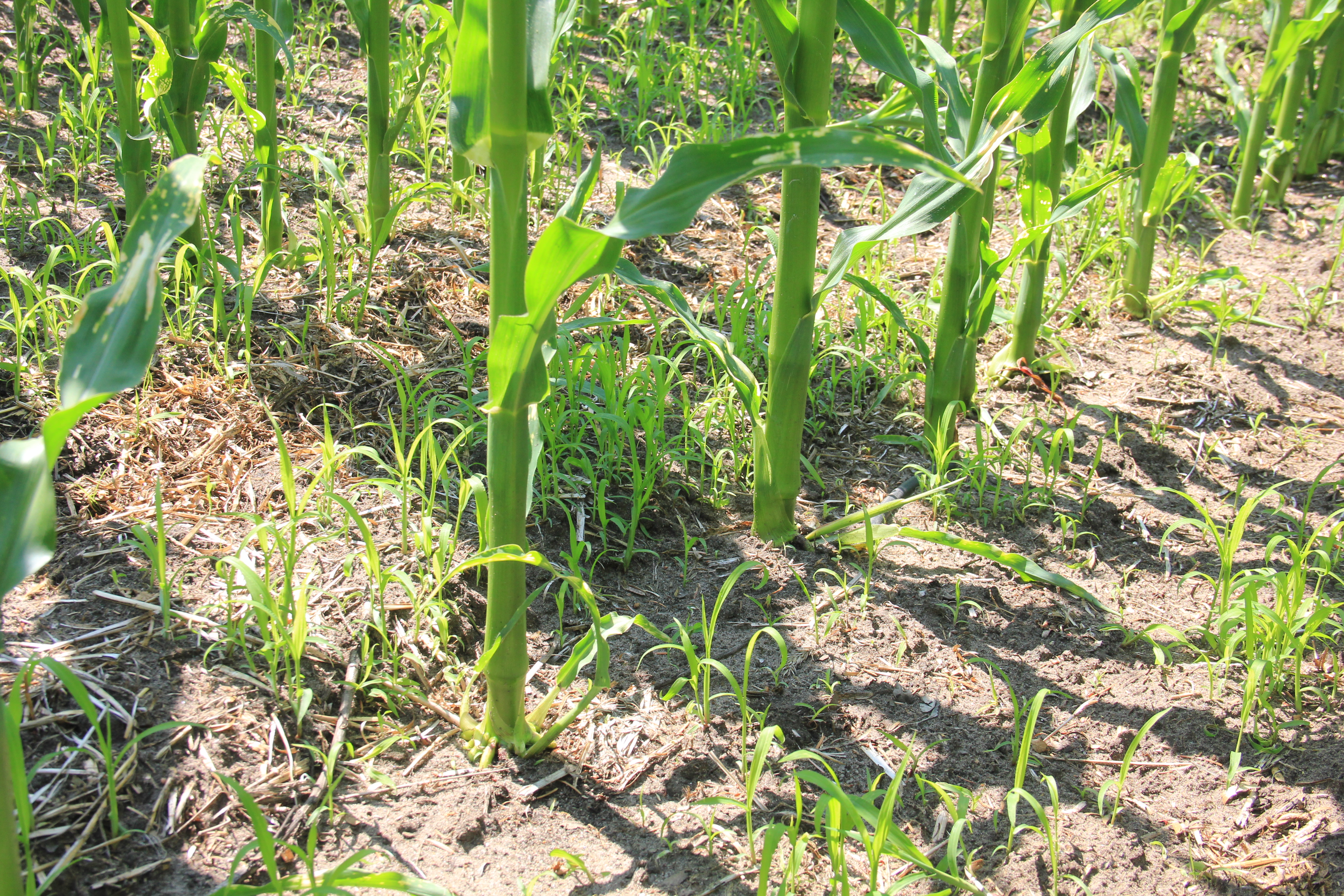 Ubehandlet plet med hanespore i majsmark. Foto: SEGES