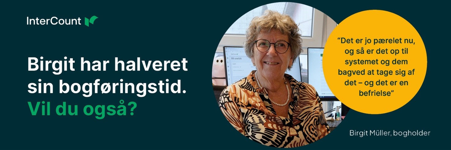 InterCount klarer en stor del af det manuelle arbejde, og udover at spare Birgit for mange arbejdstimer, så giver det også tryghed at vide, at risikoen for manuelle fejl er lille, når regningerne skal betales.