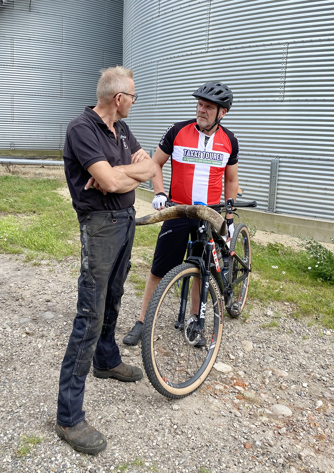 Anders Rahbek i snak med SAGROs direktør Torben Jensen, som cykler med på alle fire etaper af TAKKE TOUREN.