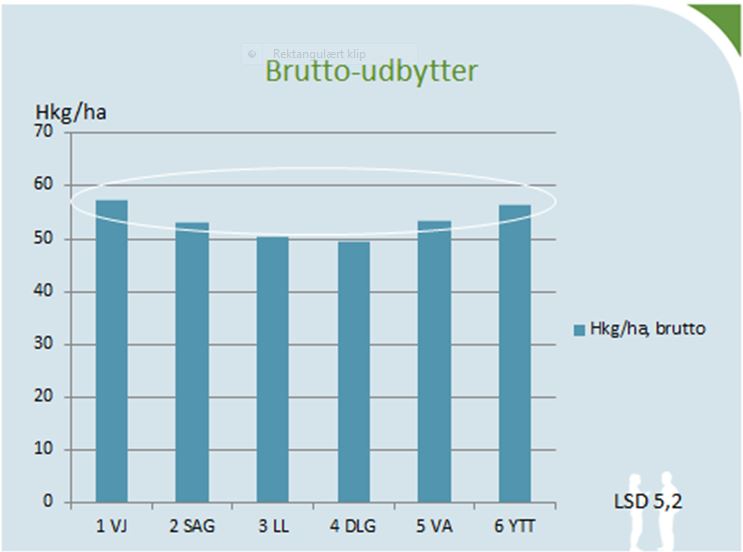 I forhold til tørken blev der høstet fine udbytter i forsøget, fra 49- 57 hkg/ha. Usikkerheden, angivet ved LSD var dog lidt højere end normalt.